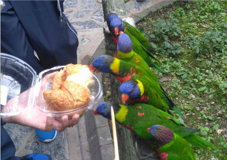 这个地方应该是叫百鸟谷,里面有成群的鹦鹉,这里鸟语花香,虽然鸟儿们们不会主动接近你,但是你如果有食物,嘿嘿嘿,它们就会疯狂的涌入你的手心,啄的你手痒痒,你就会发现,你怎么喂都喂不够,好想一直和它们玩下去…