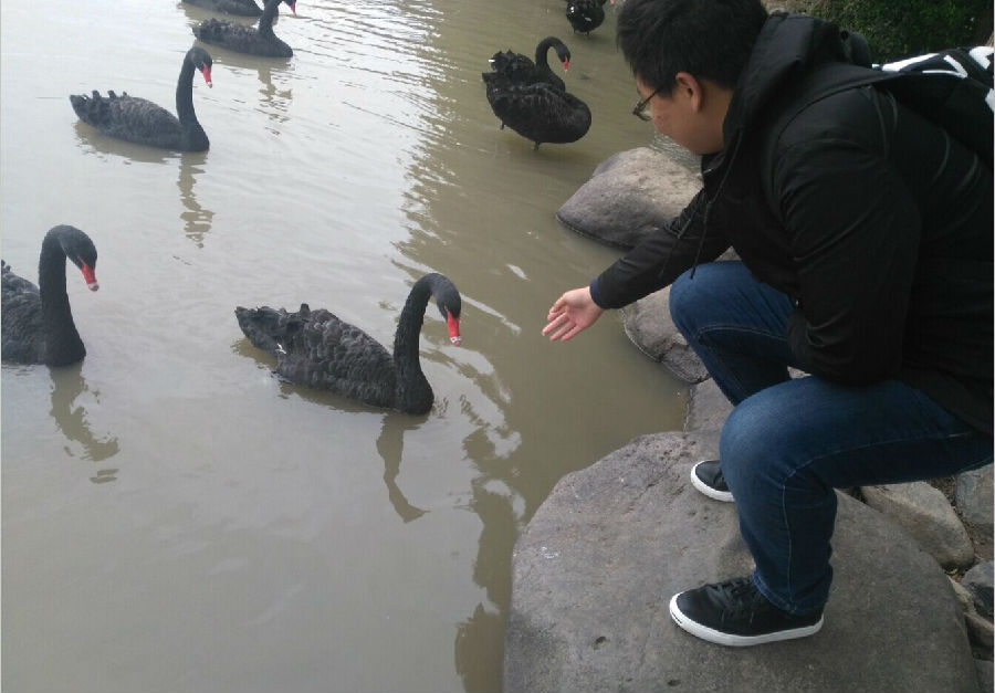 哦哦哦哦哦哦哦哦!黑天鹅!在我的印象当中,天鹅应该是很怕生的,没想到我旁边的小伙伴一挥手它就悠然自得游了过来。