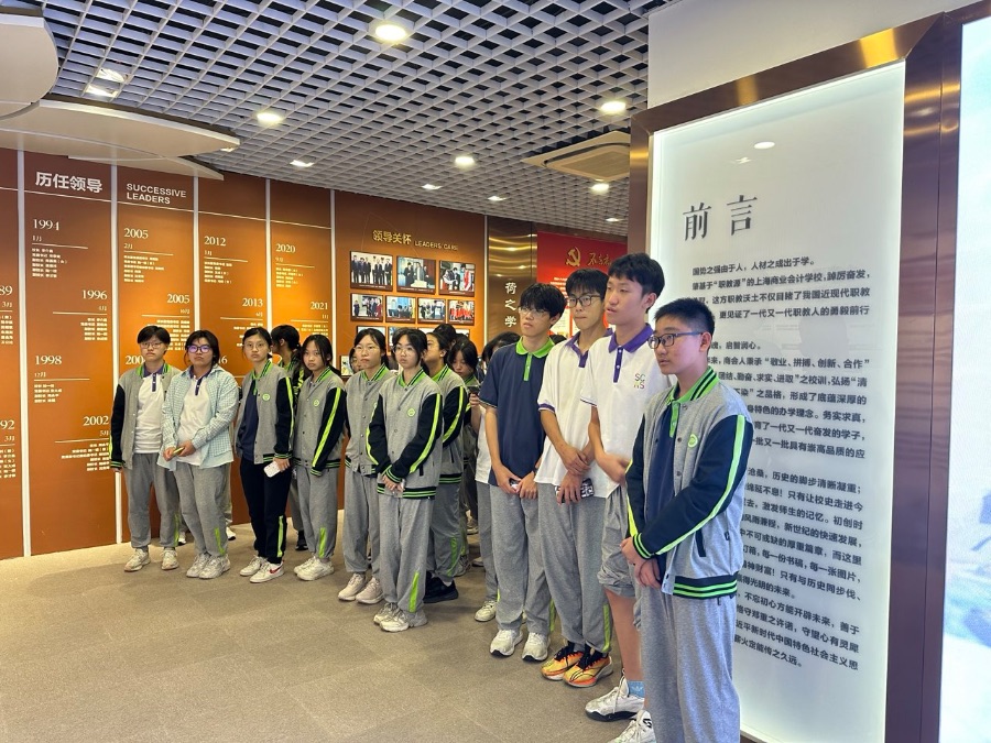 进入职教源,介绍了上海商业会计学校是中国现代职业教育的发源地。介绍了职教源的位置方位、有三个展厅。以“传与越:历史回声”为主题,回溯中国职教百年发展历程,纵览其源起、革新与发展。这些展品虽历经岁月洗礼,纹理斑驳,却依旧熠熠生辉,激励着中国职教人不断前行。