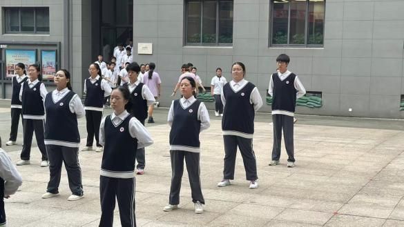 今年10月学校举办了广播操比赛。随着广播里清脆的口令响起,我攥着的手心出了汗,目光紧紧盯着前方领操员的背影。