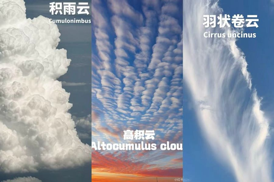 五、趣味知识:看懂云彩预测天气云是大气变化的直观指标,学会观察云彩,你也能成为“业余天气预报员”:· 积雨云:垂直发展旺盛,云体庞大,顶部常呈砧状,预示猛烈的雷暴天气。· 高积云:如绵羊群般呈带状排列,通常出现在风的切变对云层产生影响时。· 卷云:羽毛状的高云,通常预示天气将有变化。