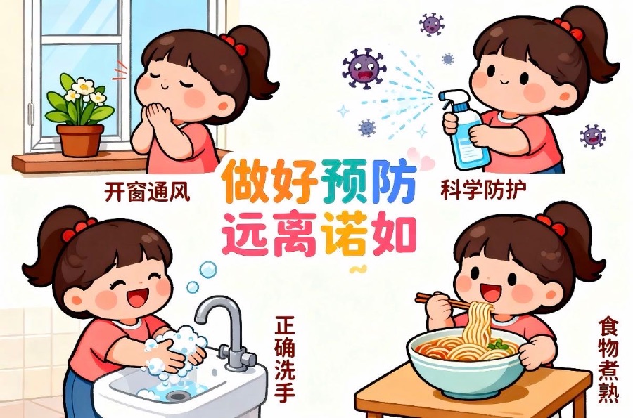 诺如病毒是一种传染性极强的肠道病毒,主要通过粪-口途径传播,食用或饮用被病毒污染的食物和水、接触被污染的物体表面都可能造成感染。感染后,患者会出现呕吐、腹泻、腹痛、发热等急性胃肠炎症状,对个人健康和正常学习生活造成严重影响。