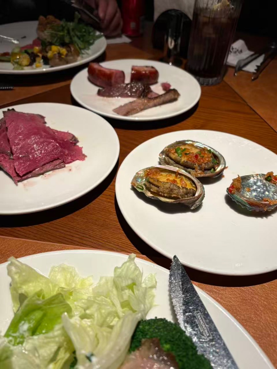 周六傍晚,我们一家去新开的旋转自助餐厅。电梯门一开,烤牛排的“呲啦”声像迎宾曲。爸爸领我去切肉,师傅手起刀落,粉红的肉汁顺着瓷盘跑。妈妈端着抹茶小蛋糕,像捧着绿色云朵。我最爱蟹脚山,拿夹子“咔嚓”掰断,雪白蟹肉蘸酱油,鲜得眉毛跳舞。爸爸偷偷把荔枝塞进球形冰碗,说给我做“冰雪星球”。吃到尾声,我们碰杯酸奶,玻璃墙外夜色旋转,像给幸福拧上发条。回家路上,我抱着圆肚子,听见爸妈轻声商量下次还要再来,车窗外的路灯立刻排成一串饱嗝。