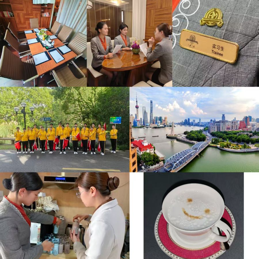 在上海大厦运营管理部行政酒廊实习期间,我从对大厦路径陌生、对高端服务忐忑的新人,从摆台标准、物资补货流程学起,如今已能独立承担全时段工作,从容应对各项任务,实现“一人担责”的成长。