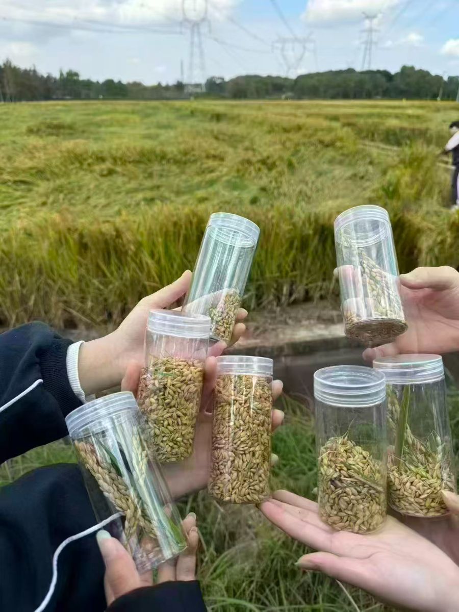 割完的稻穗要捆成束,再送到脱粒机旁,听着稻粒从穗上脱落的“沙沙”声,捧着掌心饱满的稻谷,才真正懂了“一粥一饭”背后的辛劳。秋风里混着泥土的腥气和稻谷的清香,脸上沾着汗,手上带着泥,可每个人的笑容都格外灿烂。这趟秋游没有游乐场的热闹,却让我们在泥土与稻穗间,触摸到了秋天的厚重,也收获了课本外最珍贵的成长。