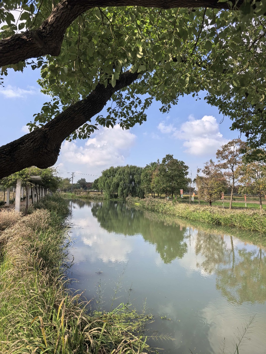 离开稻田,我们转战公园。秋日的树林像是打翻了调色盘——银杏金黄,枫叶火红,我们在斑斓光影里追逐嬉戏。最珍贵的是那张合影:四张张晒得微红的脸挤在镜头前,我和新朋友们笑得毫无保留,身后湖面泛着粼粼波光,定格下这个秋天最明亮的瞬间。