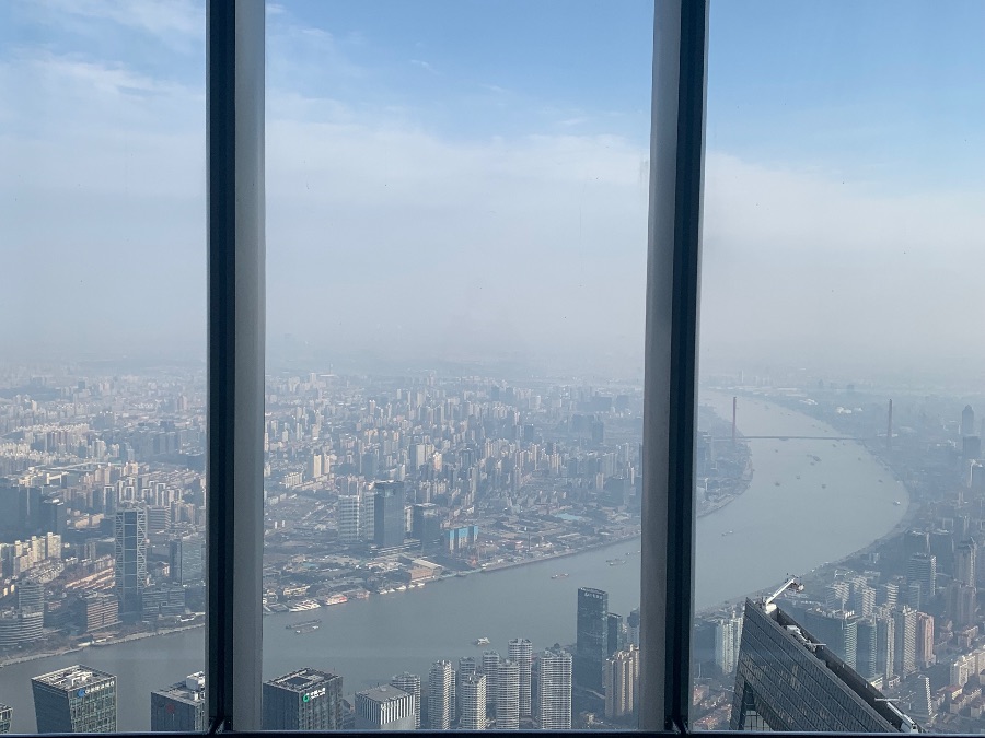 玻璃幕墙滤过的光线柔化了城市的棱角,薄雾给远景晕上一层淡纱,既衬出上海中心“云端观景台”的疏离感,又让脚下的繁华多了几分写意。这是属于摩天楼的视角:既俯瞰着时代的奔涌,又将都市的宏大凝缩成一帧静穆的画卷。