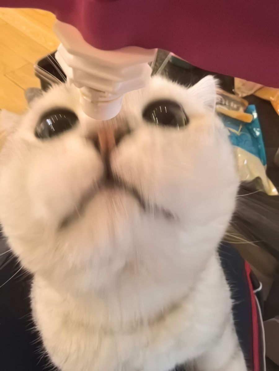 这张照片里的白猫,大概正把“猫界怼脸杀”演到了极致——镜头凑得太近,连它鼻尖的绒毛都虚化成了软乎乎的团,圆眼睛瞪得像浸了水的黑葡萄,眼仁里还晃着灯光的碎影,活像下一秒就要伸出爪子拍开这恼人的镜头。