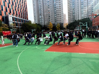 攥紧粗糙的麻绳时,掌心瞬间传来队友们传递的力量。我们身子后倾、脚步蹬地,喊着整齐的号子,每一寸肌肉都在用力拉扯。身旁穿马甲的老师高声指导,周围观赛的同学欢呼声此起彼伏,手机快门声混着呐喊穿透空气。眼角余光瞥见教学楼前的国旗猎猎作响,泛黄的树叶在风里轻摇,红绿塑胶跑道的颜色格外鲜亮。汗水顺着额头滑落,手臂酸胀到发麻,却没人松开手——这一刻,我们拧成一股绳,把青春的热血与团队的默契,都融进这场酣畅淋漓的较量里。