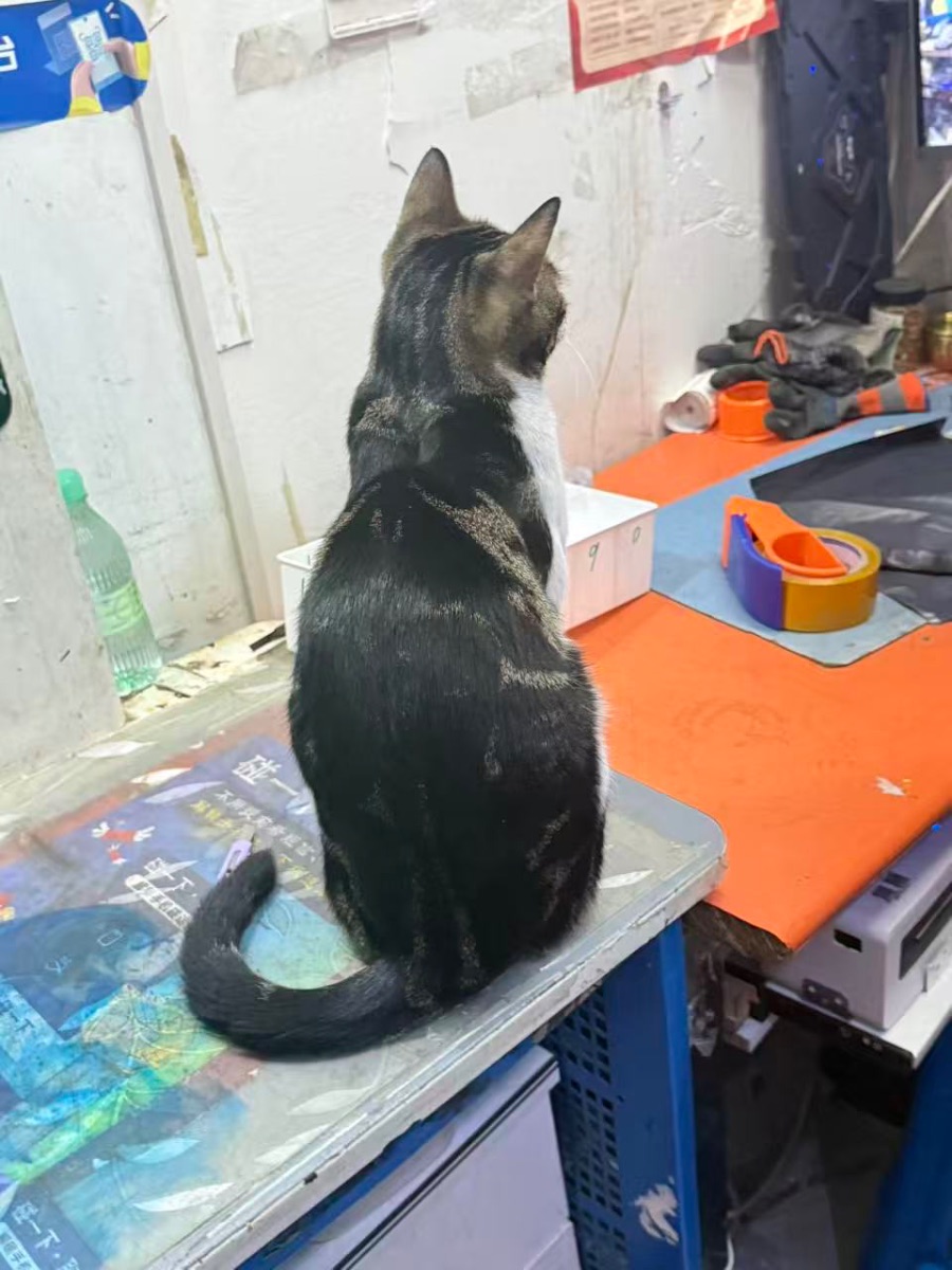 去快递站取件,一进门就看见这只小猫蹲在操作台边,背对着人,安安静静地望着忙碌的快递小哥。它的皮毛是黑棕相间的虎斑纹,胸口缀着一小撮白,尾巴慢悠悠地绕着桌沿,像个守在驿站的小监工。快递站里满是胶带的嘶啦声、扫码的滴滴声,还有包裹搬运的响动,可它却全然不受打扰,只是定定地坐着,偶尔动动耳朵,仿佛在认真观察这市井里的烟火日常。伸手想轻轻摸它,它只是微微偏头,依旧保持着那份疏离的可爱。在满是奔波气息的快递站,撞见这样一只慵懒的小猫,像捡到了市井生活里一颗软乎乎的糖。
