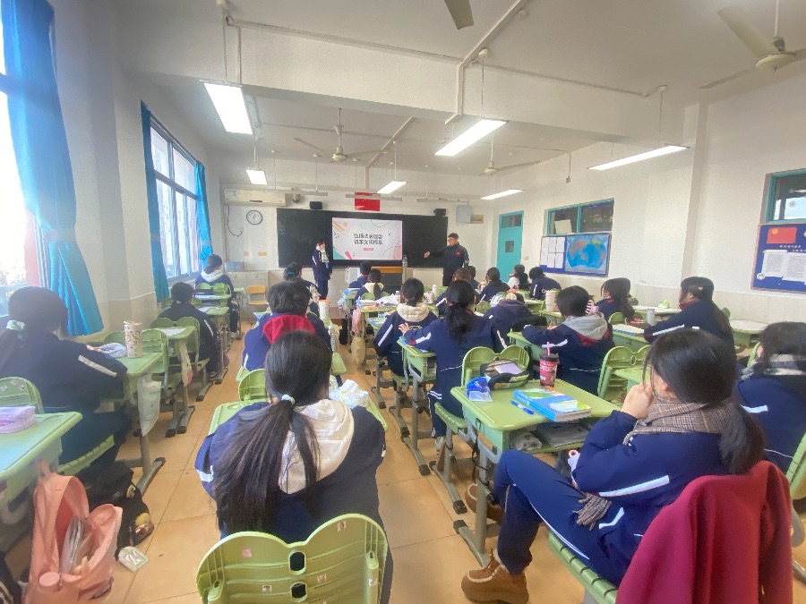 本月的主题月班会由张欣悦同学以“弘扬法治理念,筑牢文明根基”为主题,围绕“懂法于心、践法于行、传法于众”三部分展开。首先阐释法律是保护权益的“隐形盾牌”,明确高中生需坚守网络边界、人格权不可侵等法律底线及维权方法;接着介绍校园与生活中的法治实践,包括依法化解矛盾、合规维权、遵守校园与公共秩序;最后倡导做法治文明青春使者,列出校园、生活、网络中的践行清单,号召学生做懂法、守法、用法的人,以青春之力守护校园安宁、筑牢社会文明根基。