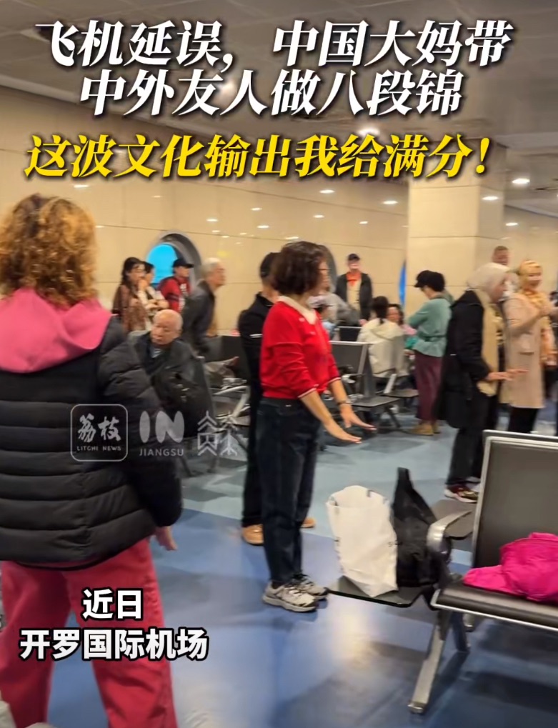在埃及开罗机场的一次航班延误中,一位中国大妈带领滞留的中外乘客集体练习八段锦,这一即兴的“跨国养生课堂”迅速成为网络热点,被广泛赞誉为一次生动的民间文化输出. 事件核心经过地点与起因:事件发生于埃及开罗国际机场。当时,因航班延误导致大量乘客滞留机场,处于焦灼等待状态。关键人物:一位中国大妈在等待期间,主动开始练习中国传统健身功法八段锦。发展:这位大妈的举动迅速吸引了周围中外乘客的注意和兴趣。她不仅自己练习,还现场开起了“教学班”,主动带领和指导这些来自不同国家的旅伴一起练习。现场效果:视频和图片显示,现场形成了中外友人统一动作练习八段锦的场景,气氛和谐,被形容为“中西合璧”和“养生无国界”。