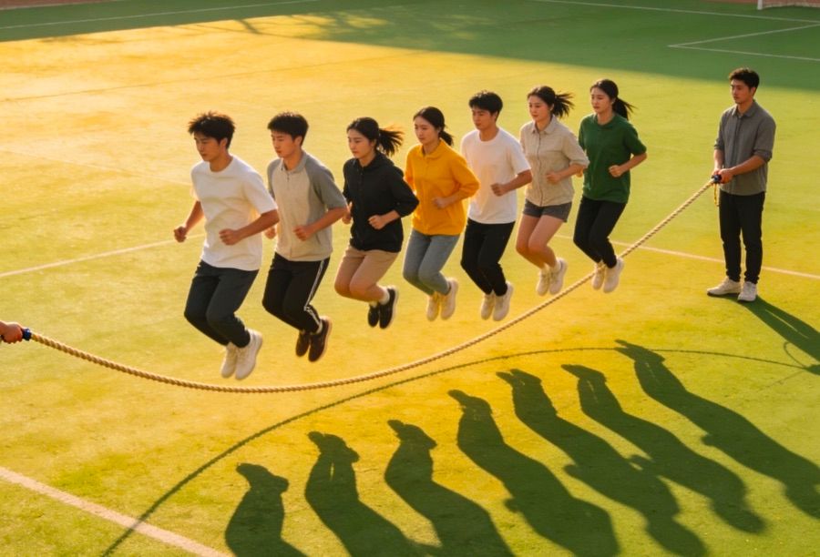这次集体跳长绳活动,让我深深体会到团结协作的重要性。十个人一起跳绳,不仅需要每个人动作协调,更要大家节奏一致、相互配合。摇绳的同学认真稳定,跳绳的同学勇敢有序,大家互相鼓励、彼此信任,才能顺利完成。