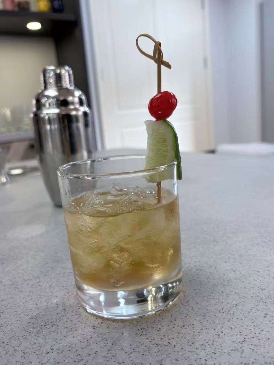 当金酒与柠檬汁在剧烈摇晃中完美融合,倒入杯中那一刻,淡淡的清香扑面而来,琥珀色的酒液在灯光下微微晃动。原来调酒不仅是技术的呈现,更是一场耐心与专注的修炼——每一份配比的精准、每一次摇晃的力道,都决定着最终的味道。这杯亲手调制的鸡尾酒,承载的不仅是味觉的惊喜,更见证了我们彼此协作的默契。