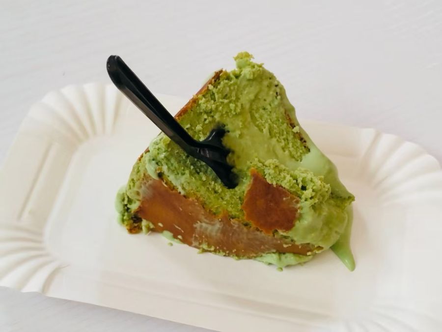 午后的光斜斜落下来,浅碧色的膏体顺着切面漫开,像把一整个春天的新茶都揉进了奶油里。微焦的饼底是时间的烙印,挖一勺,绵密的质地在舌尖化开,先是清苦的茶香漫过味蕾,再是淡淡的甜意慢慢涌上来,像心事被温柔接住。风从窗缝溜进来,带着一点春末的暖意,和这抹绿意外地契合。原来有些治愈不必刻意,就像此刻——叉子陷进松软的蛋糕,奶油顺着边缘轻轻流淌,连空气里都飘着若有似无的茶香。