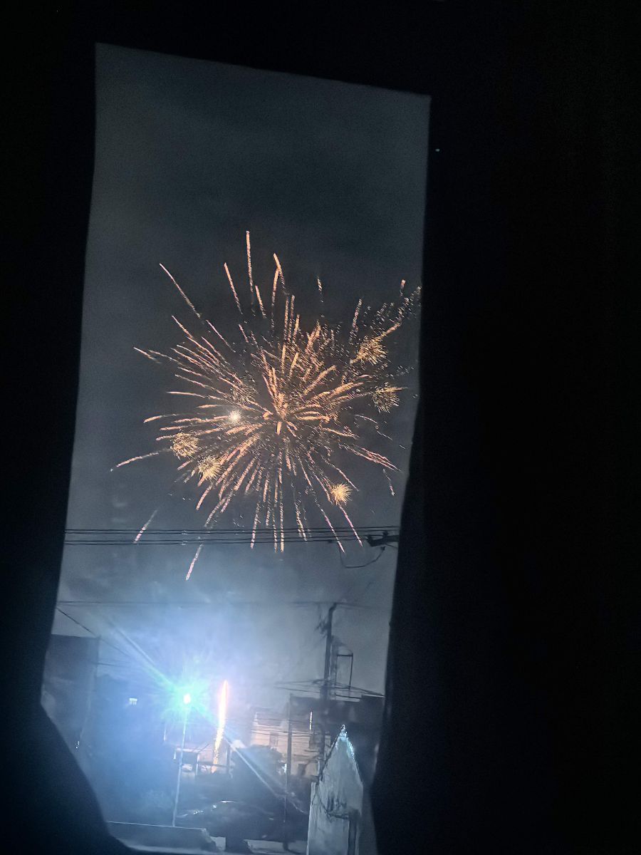 随着一声声清脆的声响,烟花争先恐后地冲上夜空,先是一点微光,骤然间绽放成漫天繁花。有的像金灿灿的麦穗,层层叠叠;有的似银白的流星,划过天际;还有的如五彩的绣球,在夜空中缓缓散开,将黑暗映照得如同白昼。光影落在每个人的脸上,满是笑意与惊叹,喧闹的欢呼声与烟花的炸裂声交织在一起,格外热闹。