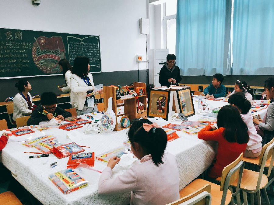 小小手绘设计师,由毕红老师主负责。本项目主要由手绘图案、装饰画两个版块组成。学生可以通过绘制脸谱、葫芦、扇面等体验,了解美术在现实生活中的体现,发现生活中无处不在的美的设计,从而激发对美的追求和向往。在16日体验日当天,这一项目由于花费时间较久,所以许多同学都没有体验到,导致大家都拥到了23日来参与,热闹非常。