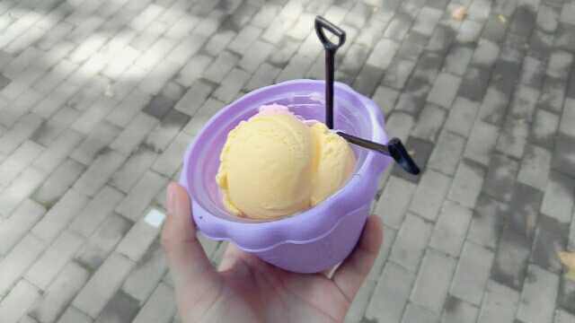 国庆期间,公园举行了森林狂欢节,配合着节日的气氛,各色美食铺一字排开。特别推荐:盆栽冰淇淋。