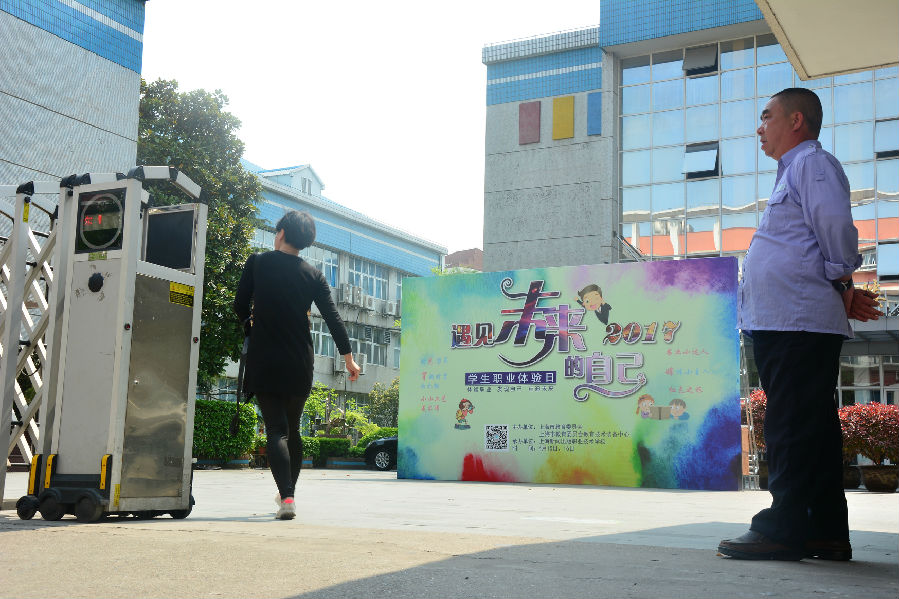 温暖的阳光洒向校园,映衬出色彩缤纷的宣传海报。2017年4月15、16日为期两天的职业体验日活动正式拉开序幕。本次职业体验日活动围绕“遇见未来的自己”主题展开,因此不少家长慕名带着孩子前来体验这次活动。