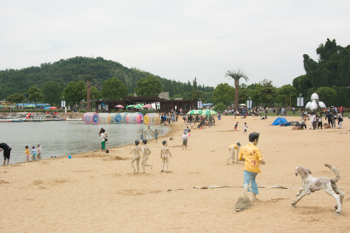 60余件以“月湖”为主题创作雕塑作品,沿湖岸错落摆放,体现出水是“生命之源”的主题。公园内最吸引小编的还是那金灿灿一片的大沙滩,小孩子可以在沙滩上用沙子堆造型,不顾形象尽情玩耍,大人们则在一旁享受日光浴,年轻人而是赤脚慢步在沙滩上,任由湖水浸湿自己的双脚。此等美景,时常来这里游玩一番岂不美哉。