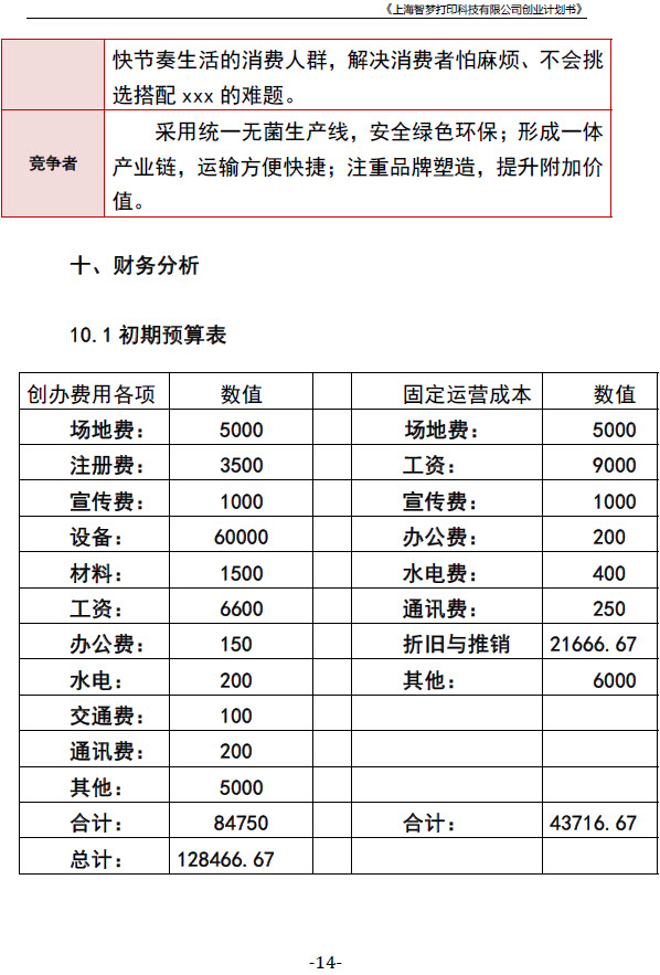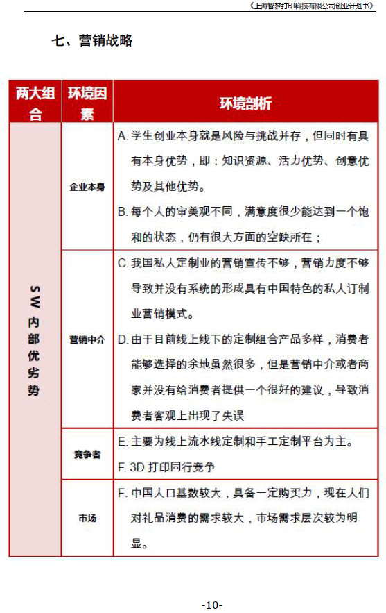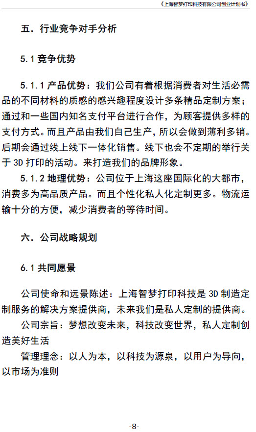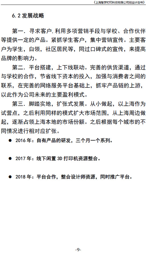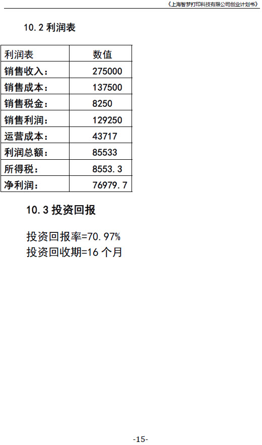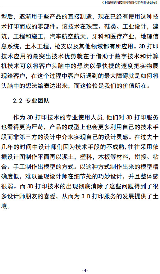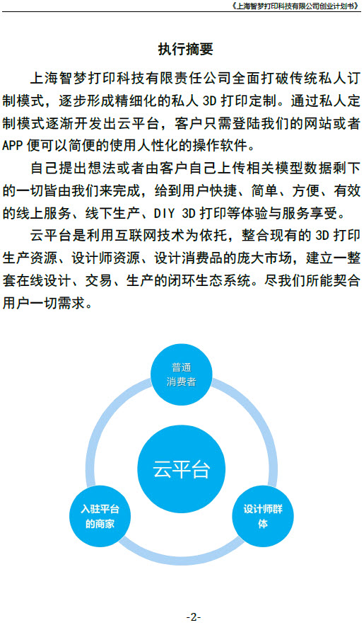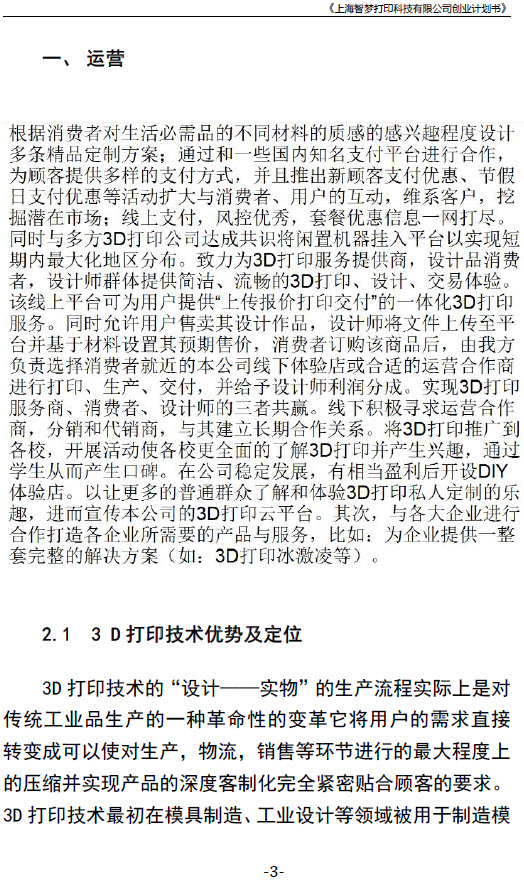 《上海智梦打印科技有限公司创业计划书》