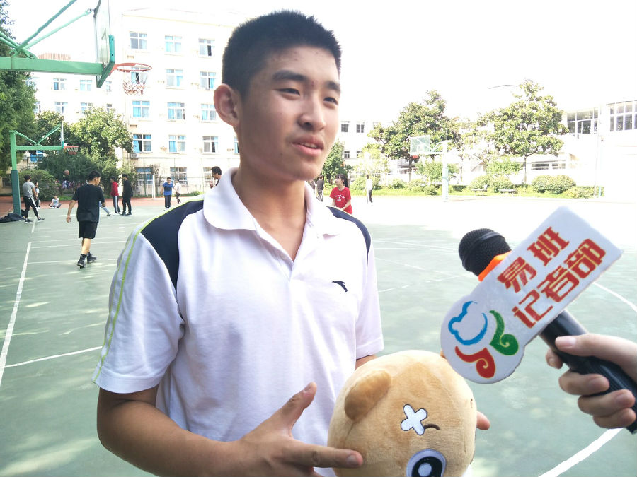 比赛时,采访小队又采访了1509班作为观众的黄祖韬同学,他认为这次篮球赛非常精彩,而且能促进同学之间的情谊,他希望所有参赛的同学越打越好,能在篮球场上大放异彩。