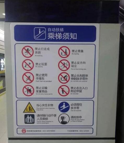 加拿大多伦多因每年有100多人在自动扶梯上受伤的案例,撤除了自动扶梯的“左行右立”标语;