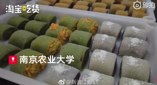 南京农业大学的食堂也不服输,最近开始出售一种新型青团,喜提热搜!把青团和驴打滚结合起来,看起来软软糯糯,十分诱人。