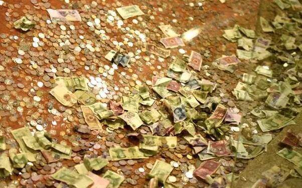 浙江杭州雷峰塔地宫遗址,尽管在旁边墙上写着“保护遗址,请勿抛物”8个大字。散落在地上的硬币粗略估计有上万枚。