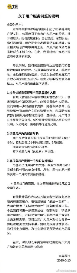 0541901 丰巢会员服务感想