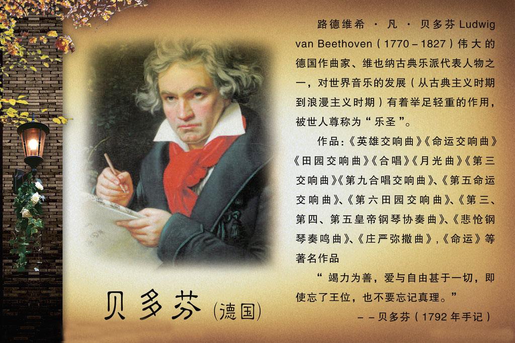 大家都知道贝多芬吧,他曾经说过我的艺术纸单位贫苦的人赞福。有一年秋天多分到外地去演出。晚上散步的时候看到了穷兄妹的贫穷和对音乐的热爱。于是就为穷兄妹弹奏一首钢琴曲又即兴创作出《月光曲》。