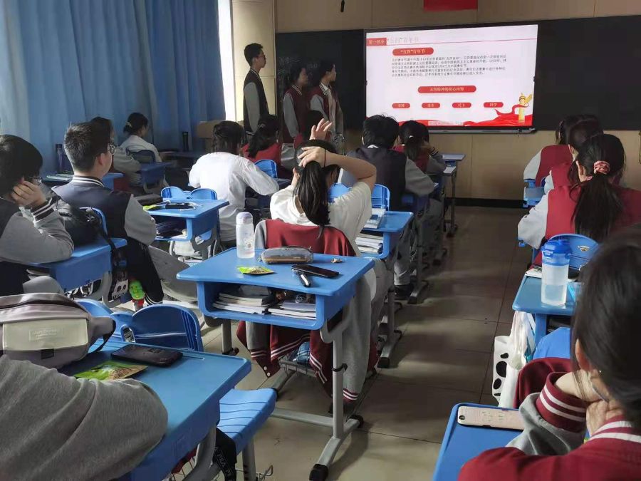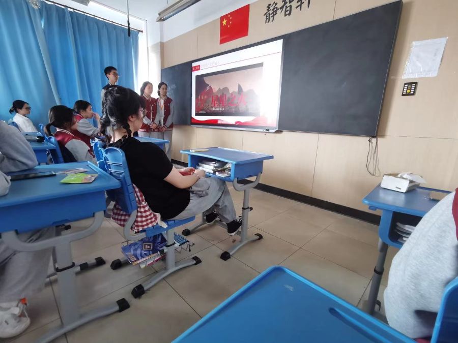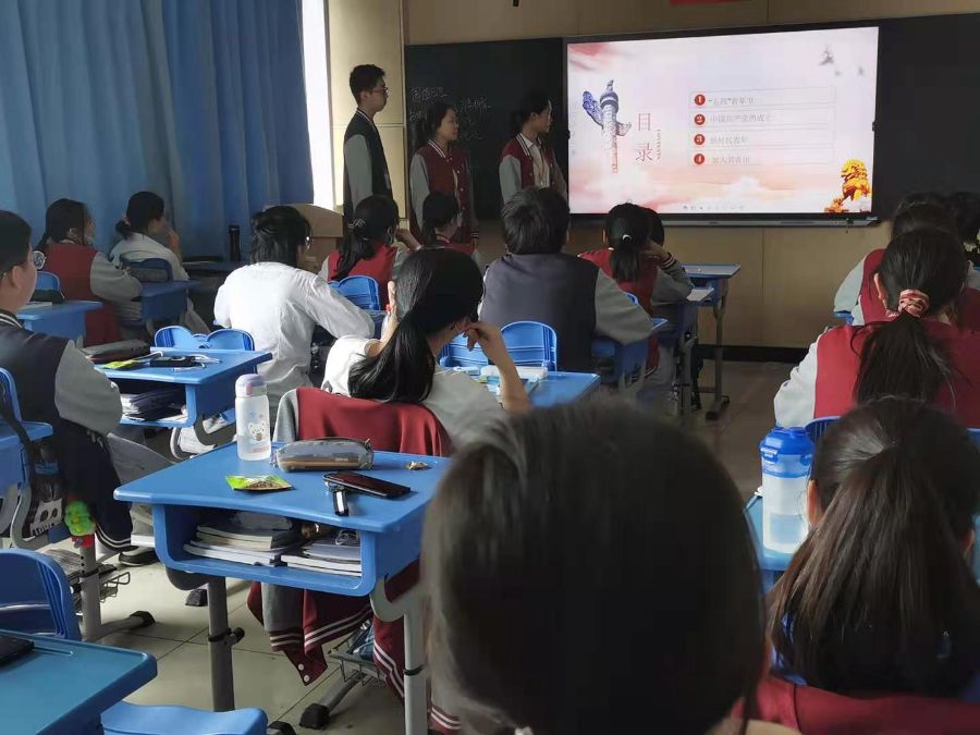 三位主持人准备充分,精心筹划,内容深刻有意义。带领同学们一起了解中国共产党的历史,引导同学们对党和社会主义祖国的热爱和忠诚,深刻理解中国特色社会主义道路是引领当代中国发展进步的正确道路,深刻理解党所肩负的实现中华民族伟大复兴的历史使命。激励同学们积极入团,用问题互动形式让同学们了解入团的意义。
