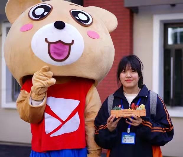 活动最后,同学们端着自己栽种的多肉植物与易班工作站的吉祥物“易班熊”合照留影,记录下这温馨的一刻。