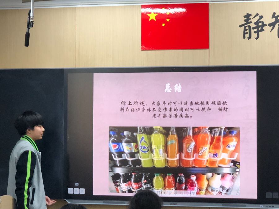 0552102班的田家骏同学在班会课上给我讲解了碳酸饮料的市场,好处以及坏处 ,并给同学们观看了相关视频,让同学们充分了解了常喝可乐带给我们身体的影响,但同时同学们也知道了适当喝可乐可以提高记忆力,预防老年痴呆等作用。