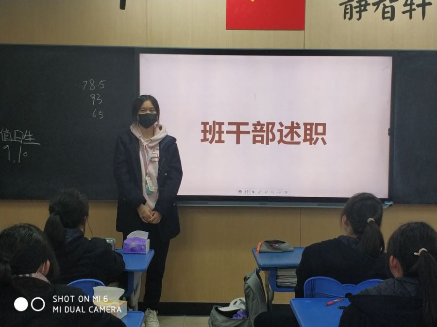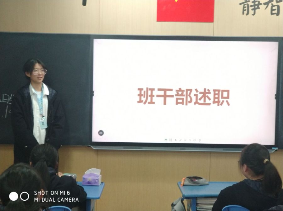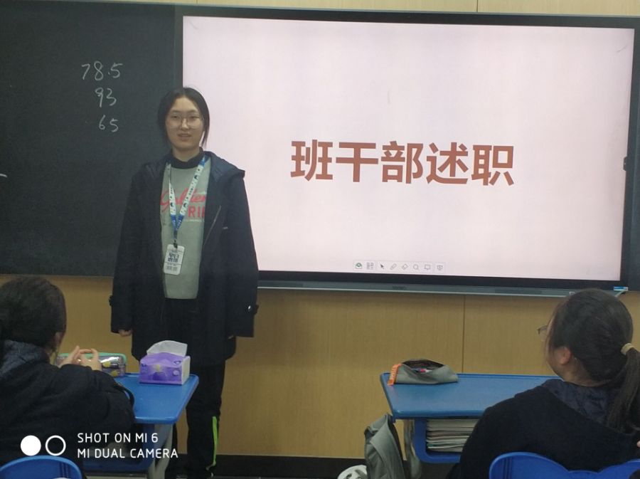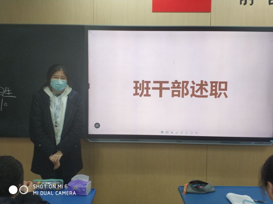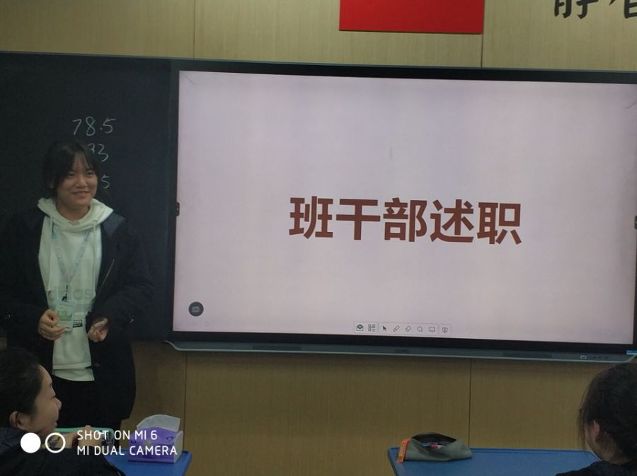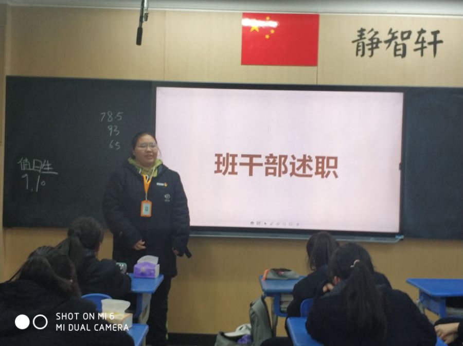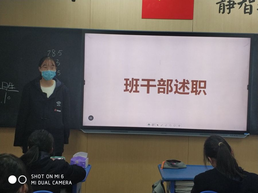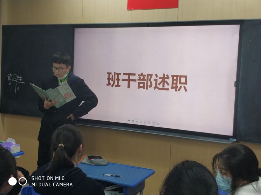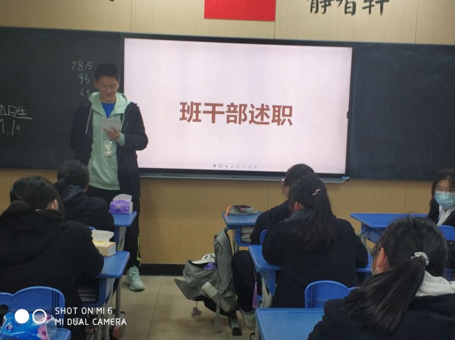 在班会课上,班主任让班干部们对期中考试前这段时间做了些什么进行述职,班主任在结尾也点评了所有班干部,给予了一些鼓励帮和助,有些不足的地方也给大家指点了出来。