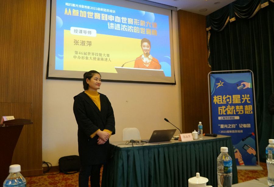一双印刷之手推动中国时间的到来——张淑萍作为“星光之约”记者团社会实践培训的特邀嘉宾于2021年11月27日来到东方绿舟青少年活动中心。干净利落的齐肩短发、和蔼可亲的大方笑容,面前是58位“星光之约”记者团学生记者、指导老师及领导,所有人都等待着她的故事,听她讲述是如何用一双印刷之手印出往昔的六年奋斗画卷。