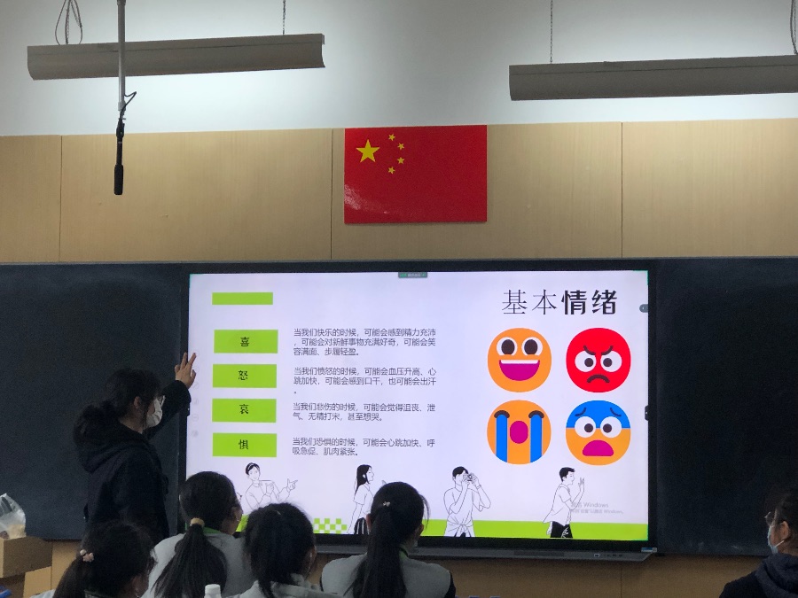 接着进行了心里班会,了解了什么是情绪,基本的情绪,复合情绪,情绪状态下的生理反应,最后要学会接纳情绪。