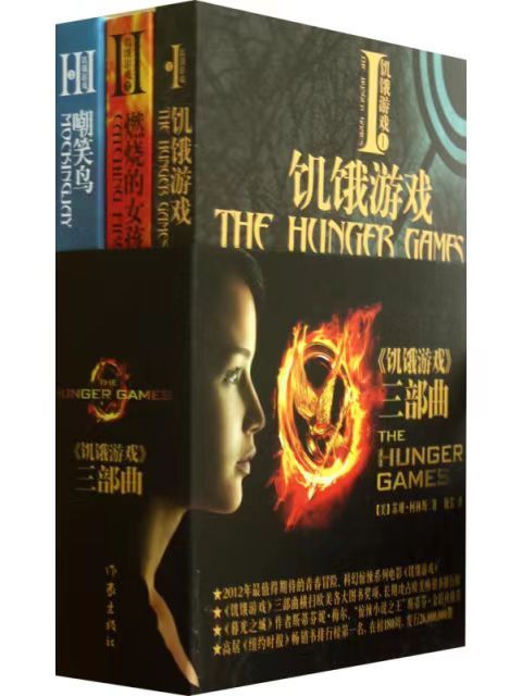 《饥饿游戏》(The Hunger Games)是苏珊·柯林斯创作的科幻青春系列小说,由《饥饿游戏》、《饥饿游戏2:燃烧的女孩》、《饥饿游戏3:嘲笑鸟》组成,其中文版分别于2010年1月、2011年1月、2011年5月首次出版