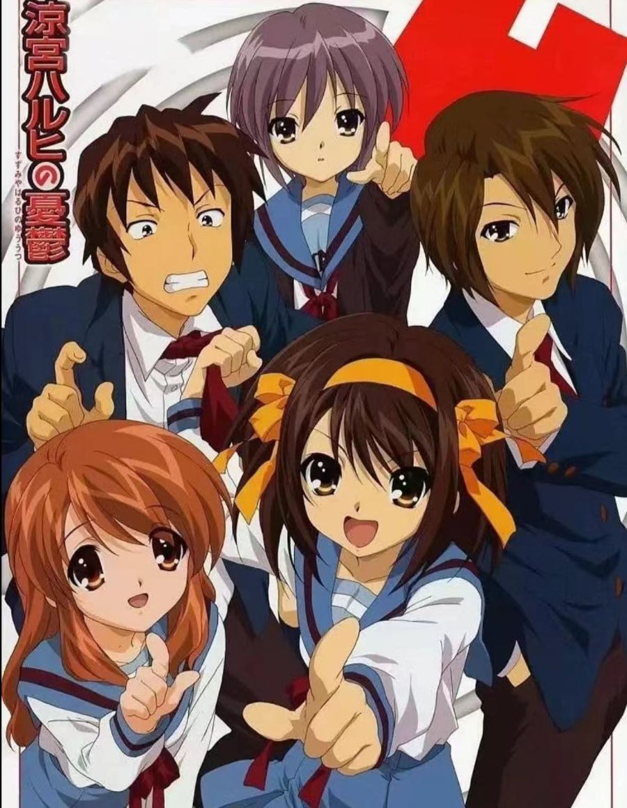即将升入高中的阿虚原本一如既往的过着平平淡淡的日子,自小就不相信圣诞老人存在的他,在相当长的一段时间内居然是相信外星人、未来人、超能力者以及动漫特摄英雄等存在的,当他注意到他们并不真实存在于世时,已经是很晚的事了,好吧,他突然又觉得自己注意到这些事物不存在的时候并不算晚了。他入学时在班上的自我介绍十分平凡,简直平凡到会让人忘掉。在这样灰白的色调中,坐在他后排的女生站了起来,开始自我介绍。“我叫凉宫春日,毕业于东中,我对普通的人类没有兴趣,你们中要是有外星人、未来人、异世界人或者超能力者,就尽管来找我吧!”全班同学都被她的发言震惊了,阿虚也回头看了看这个坐在他后座的疑似中二病少女,一瞬间,他的世界染上了五彩的颜色。这个女生就是日后SOS团的团长凉宫春日。虽然是个如假包换的美少女,能力也十分强大,对所有技能上手极快,所有社团都想向她抛出橄榄枝,但她的性格非常古怪,很少和别人说话,最终因为对社团活动感到无聊拒绝了邀请。相对能和她正常正常对话的只有前排的阿虚,在一次对话中,阿虚告诉春日,既然你觉得现有的无聊,那你自己创造一个有趣的啊。谁知道,凉宫春日居然真的自行组建了一个社团,目标是让全世界热闹起来,她还以极快的速度拉了一些看上去非常“有趣”的人加入了社团,分别是“三无”少女长门有希,拥有萌娘属性的朝比奈实玖瑠,以及神秘转校生古泉一树。接下来发生的事情,彻底超出了阿虚的意料,古泉一树其实是超能力者,长门有希其实是外星人,其实朝比奈实玖瑠是未来的时间旅行者,而凉宫春日竟然居然是世界的“神”一类的角色,他们来到这里一方面是因为凉宫春日的思绪与想法,确实会在无形中影响整个世界的运行,另一方面就是为了监视她