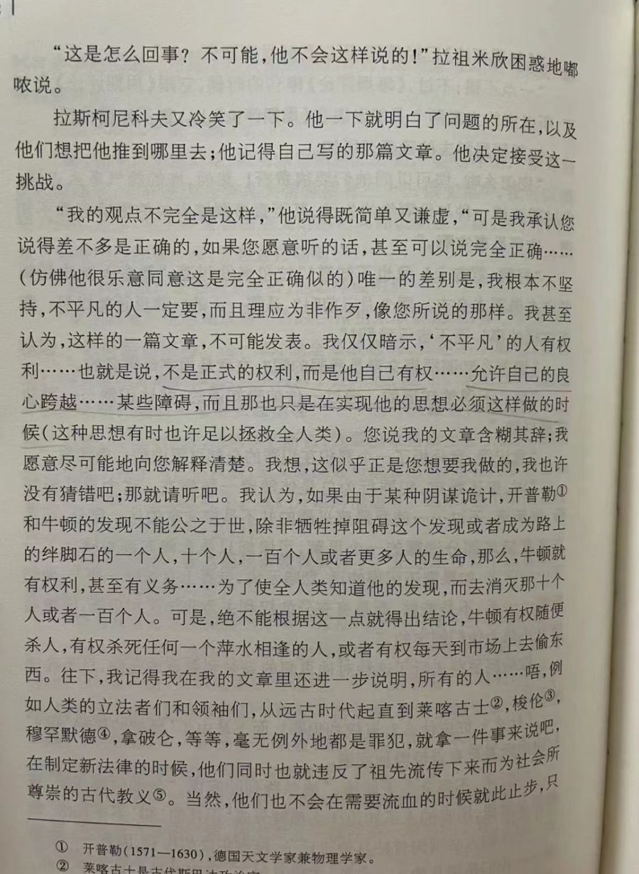 这是一部浸透着血和泪的社会悲剧,一部酣畅淋漓地剖析了一个罪犯内心世界的心理小说,小说以刑事犯罪为题标,写的是罪与罚。主人公是一位大学生名叫拉斯柯尼科夫,为贫穷所迫,他不得不中途辍学,他住在一个衣柜似的陋室里,像只猫一样整天躲避着他的房主,只靠着母亲省下来的一点抚恤金过日子,在他走投无路的时候产生了一种理论。他把人分为了两类,一类平凡人,另一类是统治者,不受法律的约束,可以为所欲为的人。于是他铤而走险,举起了发抖的双手,用斧子砍死了一个放高利贷的老太婆,抢走了她的钱和首饰。事情虽然干得不顺利,但又由于某种巧合,他竟然完全地逃离了死场,后来警方也找到了一个假凶手,然而他虽然摆脱了法律的惩罚,却受到了另一种可怕的惩罚—道德与良心的惩罚。