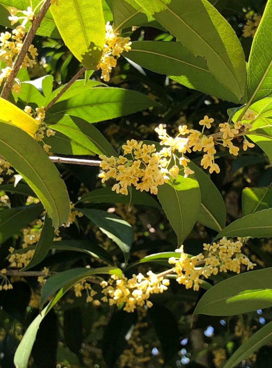 仲秋,有风的地方,必然是有清香的。在校园中,便有两株桂树。它们生长在校门口的土壤里,一年四季,迎着我们进入校园。素日,它们倒也与其他树没什么不同。但时至中秋前后,枝桠间就会冒出一簇簇金嫩嫩的小花。届时,在校内校外,都会有一股自然的浓郁香气,沁人心脾。