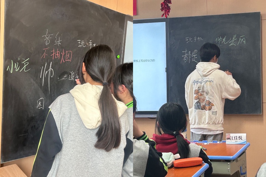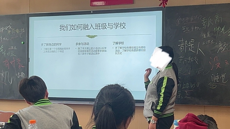 今天我们开展了一次让同学们互相了解的班会课  每个人都是不同的存在 在学校里发挥发展自己的特色 拥有自己独有的美丽 在班级中同学们互相了解了一个月 大家都对不同的同学有了不同的印象!