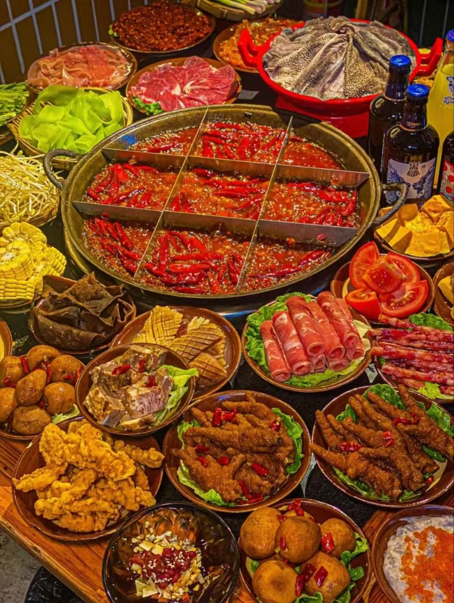 重庆火锅以其麻辣鲜香而著称,是重庆美食的代表。此外,重庆小面、辣子鸡、毛血旺等也是非常有名的特色小吃。