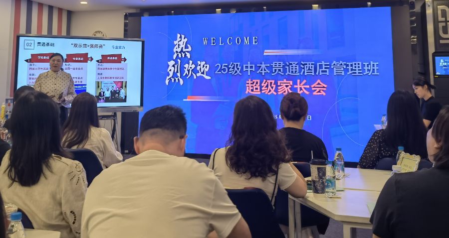 新生新学期家长会,爸爸妈妈都来了,我好开心,大家都很棒,同学们多才多艺,学姐语重心长,老师们殷殷期望,我一定会在七年中本贯通学习中努力向上,喜欢我们的25酒店1班,大家一起努力吧!;杉达大学的教授给我们打开了大学新鲜的触角,真的好激动,未来的大学如此漂亮和专业;我们会一起渡过7年;对于未来我们更加期待,需要我们进一步明确目标,明确学习的动力,我们都是八九点钟的太阳,充满朝气,充满活力;就如老师说的,做有知识的好人,做无愧于时代的商贸旅游的学子;未来在招手,我们朝着同一个目标而努力奋进吧!虽然回家晚了,但是我很充实;第一次穿正装,很帅哦,虽然有点不习惯,但是我们很自豪!因为我们是积极向上的商贸旅游人!