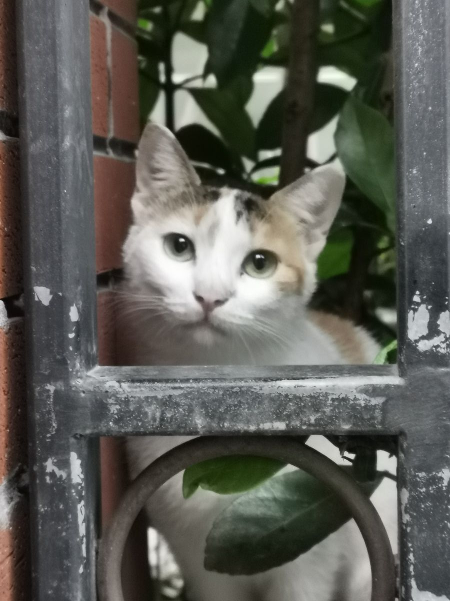周四放学路过围墙,撞见了这只三花小猫咪——圆溜溜的眼睛正扒着栏杆望过来,像把秋阳揉碎在瞳孔里。