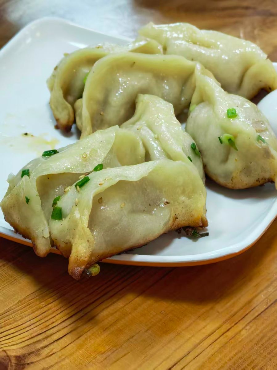 最后一节课的下课铃总像是救赎。拖着灌了铅的双腿晃出校门,那股熟悉的、混着焦香与肉鲜的气息,便不由分说地将我勾了过去。“一两锅贴。”话音落下不久,铁板便滋啦作响。端到手的锅贴,金黄酥脆的底子倔强地翘着,像穿了一身焦甲。迫不及待咬开一个小口,滚烫的汤汁瞬间涌出,鲜得人一激灵。肉馅紧实饱满,面皮韧而不厚,焦脆的底在齿间咔嚓碎裂——咸、鲜、香、脆,在唇舌间轰然炸开。那一刻,卷子上的红叉、背诵不完的课文,仿佛都随着这口滚烫的烟火气,消散在傍晚的空气里。胃被踏实填满,心也跟着落回了原处。这金黄酥脆的治愈,是学生时代最朴素,也最确切的
