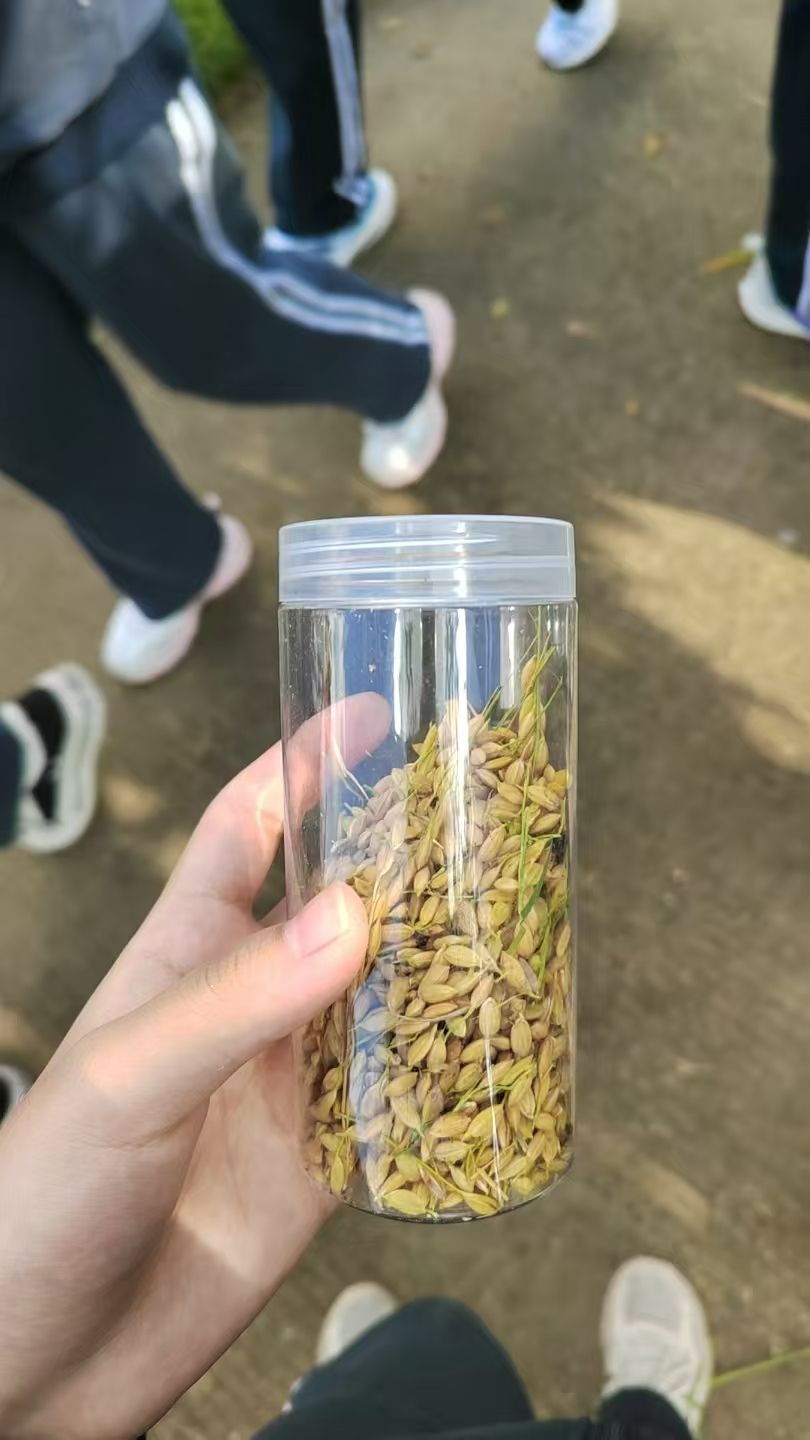 最后每人领了一小罐自己收割的新米当纪念,捧着这罐带着阳光味的米,突然懂了“一粥一饭当思来之不易”。这趟特别的麦田秋游,比任何打卡都有意义!