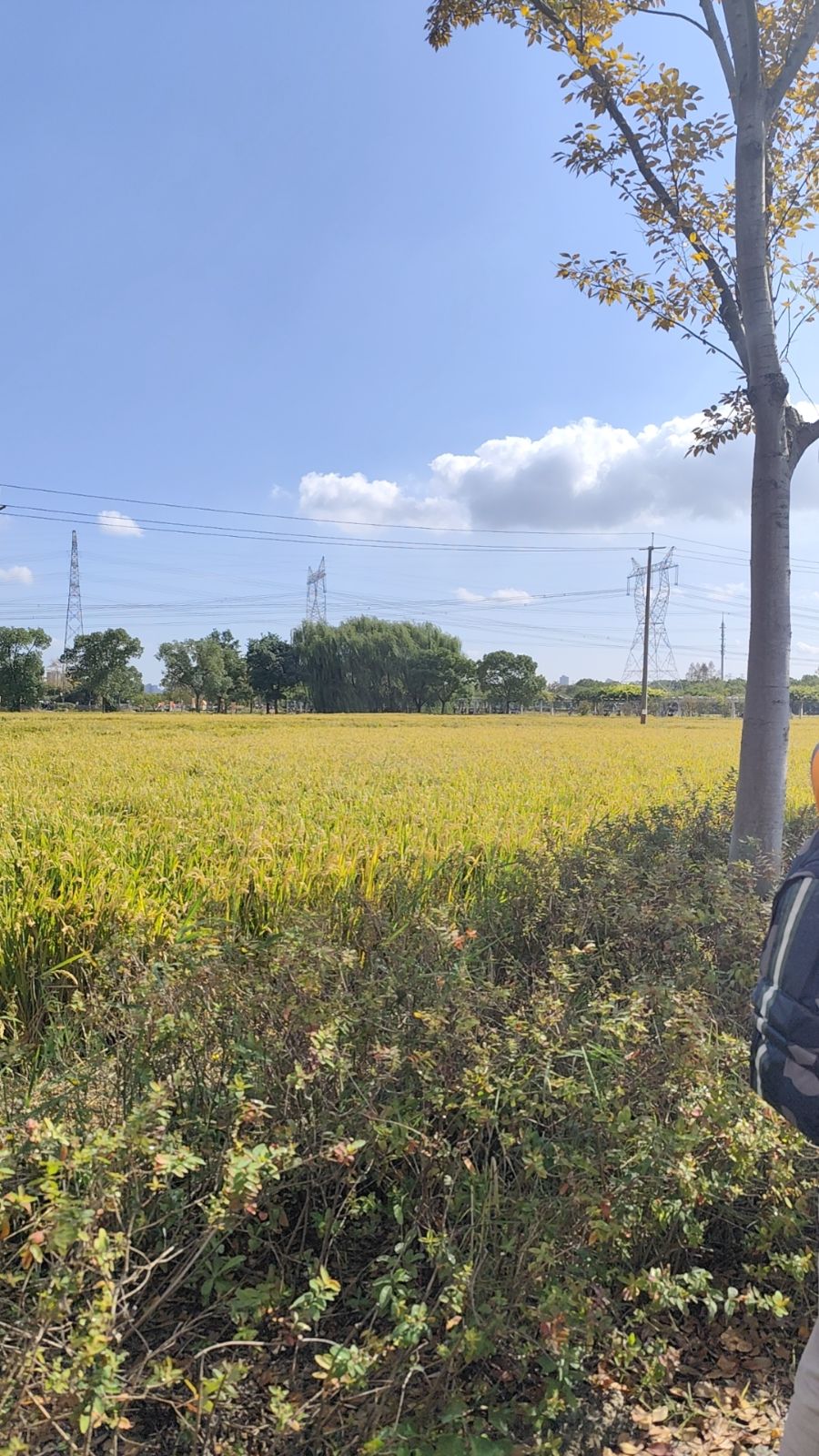 漫步在这片金黄的稻田旁,蓝天、白云、稻浪与树木相映成趣,还有远处的电塔勾勒出独特的乡村图景。这是自然与人文交融的美好画面,金黄的稻穗是丰收的喜悦,湛蓝的天空是秋日的馈赠。在这里,能感受到时光的静谧,也能体会到土地的深情。它提醒我们,在忙碌的生活中,别忘了停下脚步,看看自然的馈赠,感受这份朴实而治愈的田园之美,让心灵在这片天地间得到片刻的休憩。