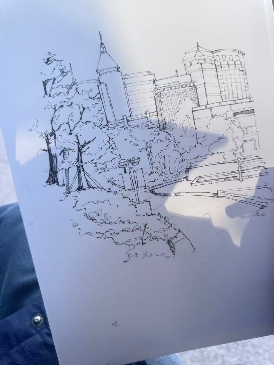 收笔时,夕阳正给建筑镶上金边。画纸上的光影还在流动,像这个下午,轻轻呼吸。
