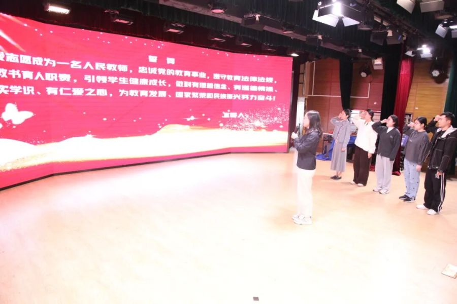 推进会上,在全场见证下,新进教师与带教教师分组签订带教协议,明确带教职责与目标。签约仪式后,新进教师们在周海艳老师的领誓下庄严宣誓,铿锵誓言不仅彰显了新教师投身教育事业的决心,更传递出他们对“四有”好老师标准的追求。